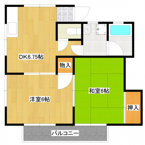 2LDK 洋室6帖+和室6帖+DK6.75帖