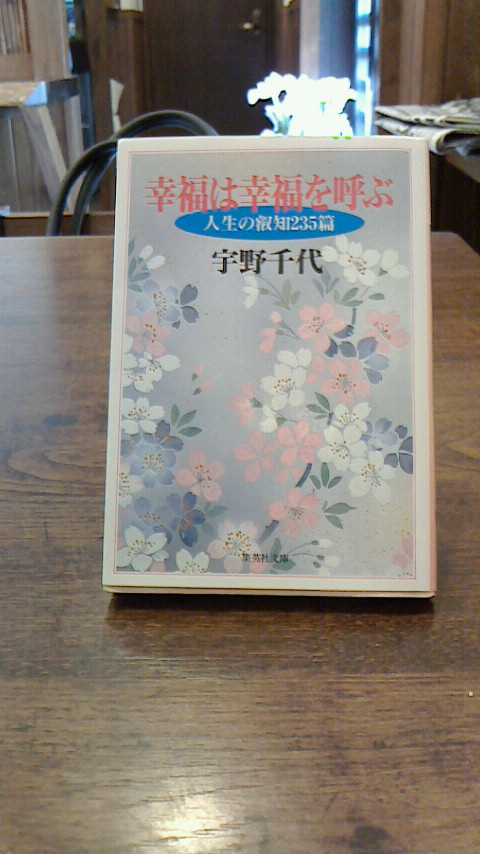 先日、行きつけのお蕎麦屋さんの女将さんより宇野千代さんの自伝「幸福は幸福を呼ぶ」をこの本を読むと元気がもらえるよ!!と言って貸して頂きました。